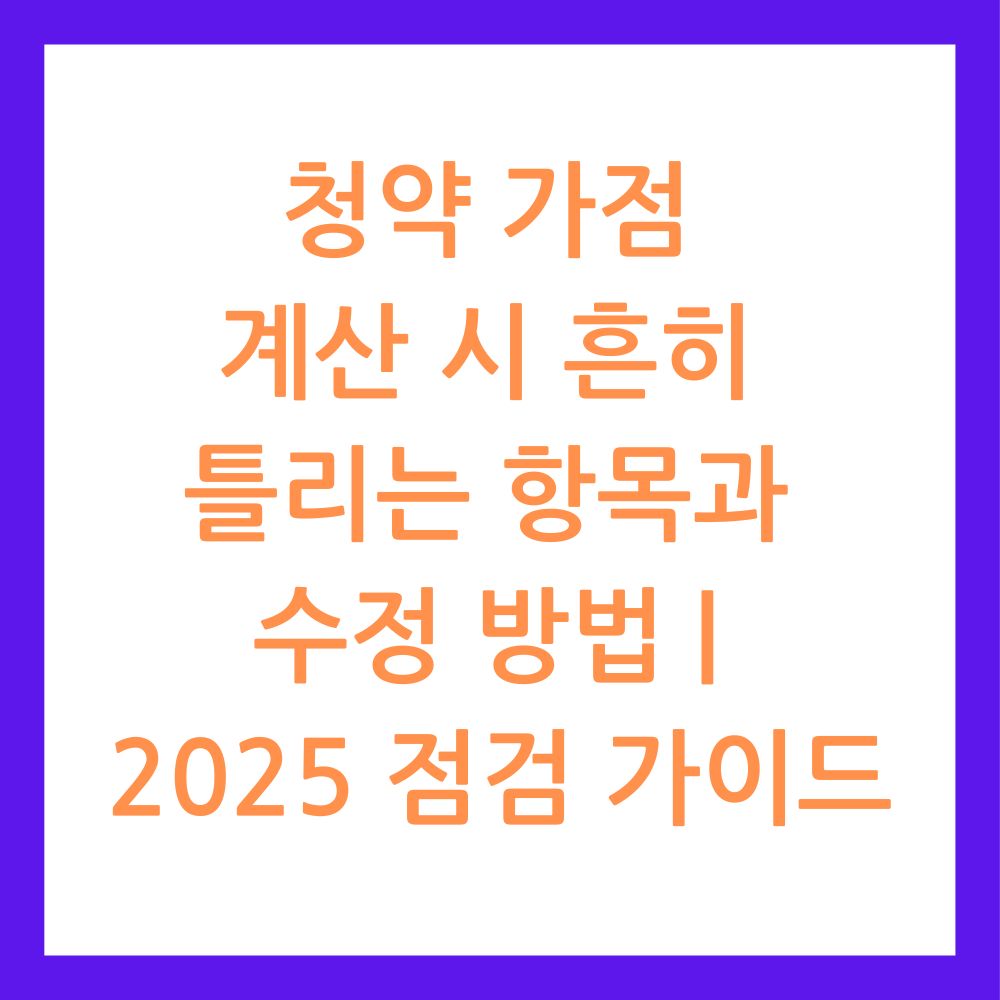 이번 글에서는 청약 가점 계산 시 자주 틀리는 항목들과 그에 따른 정정 방법 및 사전 점검 요령을 2025년 기준으로 안내합니다.